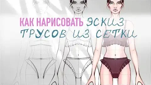 Урок рисования. Как нарисовать эскиз нижнего белья. Фэшн иллюстрация стринги. Прозрачная ткань
