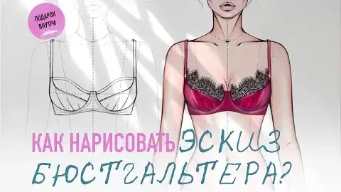 Как рисовать эскиз бюстгальтера с кружевом. Урок фэшн иллюстрации. Дизайнер одежды