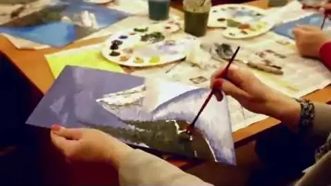 Акриловая живопись в школе «Все Малевичи».Тема занятия «Горы»