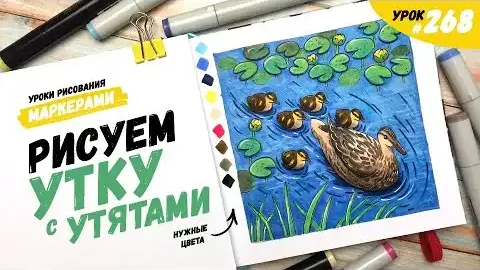 Как нарисовать утку с утятами? / Видео-урок по рисованию маркерами #268