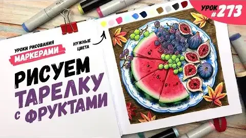 Как нарисовать тарелку с фруктами? / Видео-урок по рисованию маркерами #273