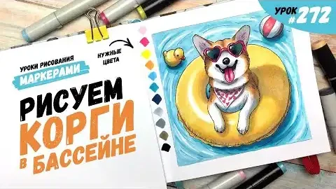 Как нарисовать корги в бассейне? / Видео-урок по рисованию маркерами #272