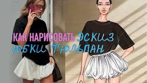 Урок Как рисовать эскиз нижнего белья. Юбка тюльпан баллон. Фэшн иллюстрация дизайнер