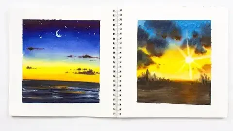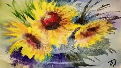 Курс рисования «Акварельная живопись» Начинающие. Урок 4-3. Подсолнухи Техника по сырому.